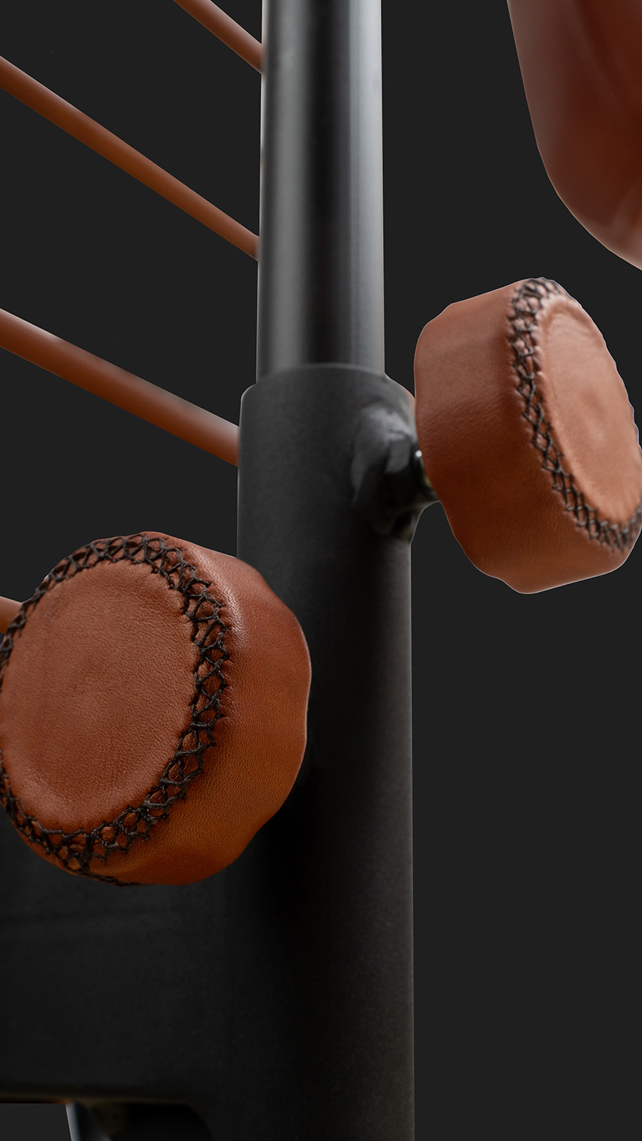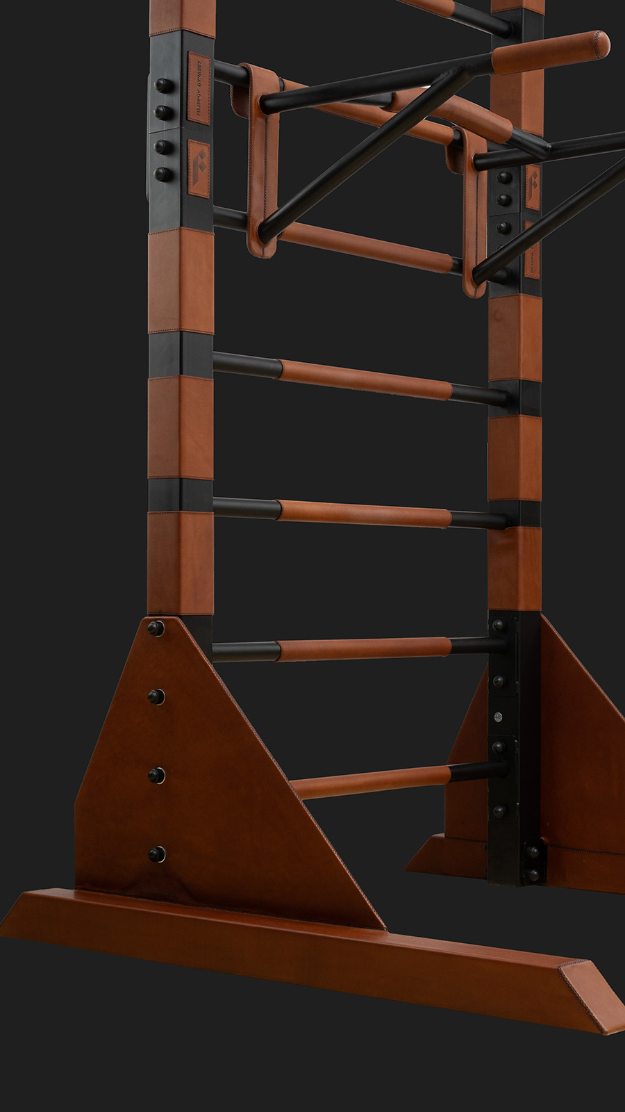 Ручная отделка тренажера натуральной кожей. Кожа тонируется смесью натуральных масел и восков и приобретает свою неповторимую индивидуальность,кожа остается живой и со временем красиво стареет.